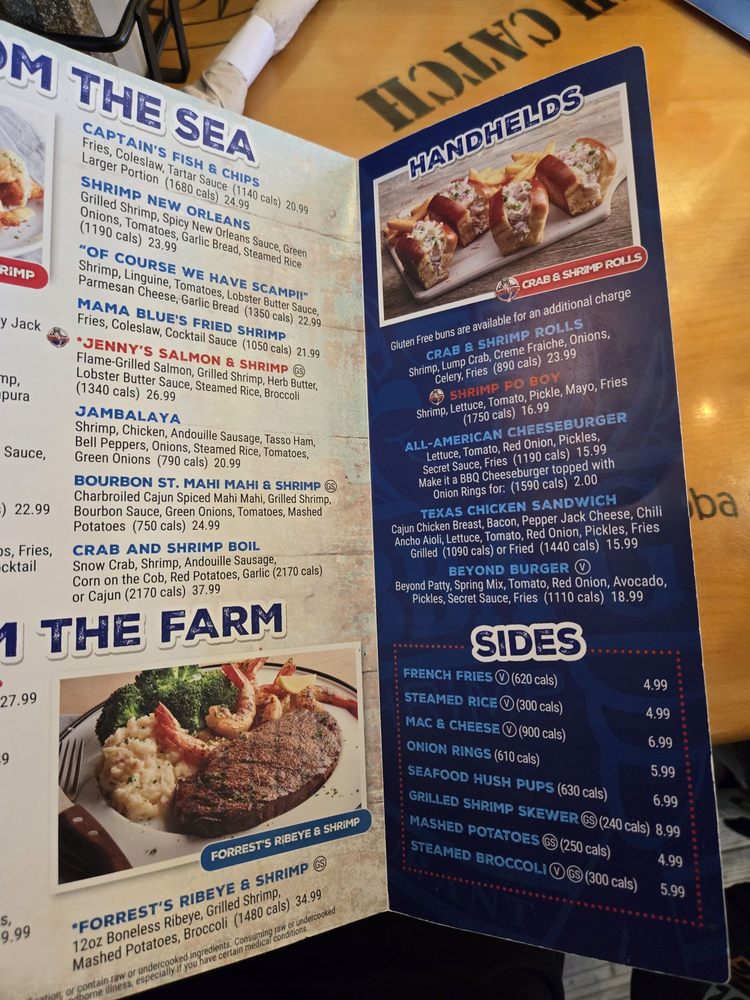“ I am very glad that for my first time at Bubba Gump Shrimp here in Miami that it ended up being a very pleasant experience. I will say that the reason I'm taking the star off is because it was very hot inside and it seemed as if the air wasn't working and the prices for drinks and food, for what you get is decent but a little too much. But I understand that's what you are paying when you are in downtown Miami. We were seated very quickly, there was four of us. I will say that the seating arrangement that they put us in, we were in literally the corner and thought we would be forgotten about because our table was hidden away in the back. Luckily our server came over rather quickly and got her drink orders and brought over water while we waited. I got the blue Hawaiian which came with a red white and blue Shaker that I could take home with me after I finished my meal. It was a very good drink however it was incredibly sweet and tasted as if there was maybe half an ounce of alcohol in it, for $12 it was refreshing but I would not order more than one. I do like the flavor of the rum and the juices all Blended well together. For my meal I decided to get a cheeseburger cooked medium and when it came out it was more on the medium rare side which I didn't complain about because I like having a little bit of red in my meat. However when I am ordering medium I want to make sure that I'm getting medium and not medium rare. The toppings on the burger are very fresh and the cheese melted perfectly on it as well. The fries on the side were seasoned beautifully and had a perfect crunch with every bite I bit into. Overall the meal was good however at $17 for the burger it is a little steep. Overall a nice little first visit to Bubba Gump and I won't be back if I am in the area and in the mood for burger and fries. Prices are generic for Miami especially when you're in a touristy area and the service was pretty good overall! ”
